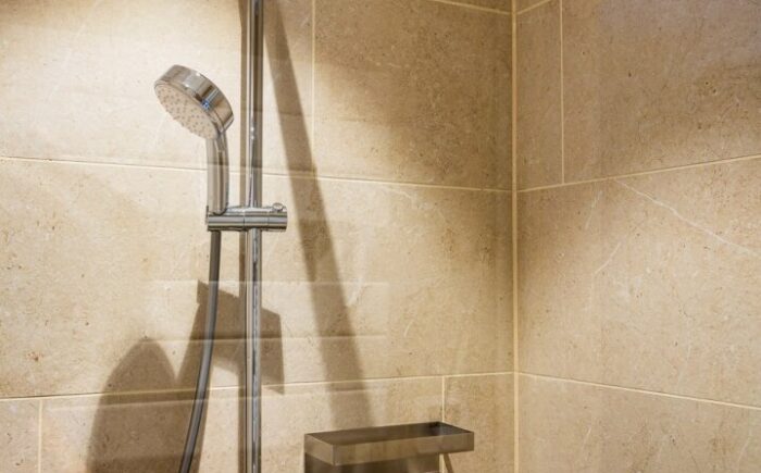 *Basic bathroom amenities with rain shower, towel radiator, towels, shower mat, hair dryer