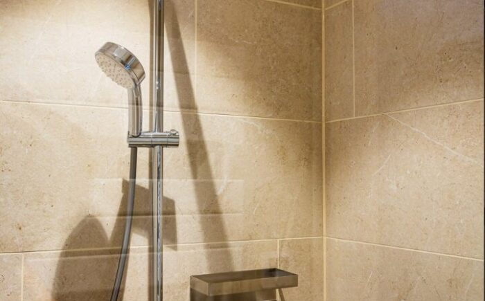 *Basic bathroom amenities with rain shower, towel radiator, towels, shower mat, hair dryer