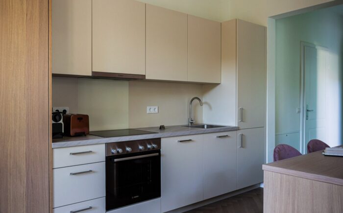 Welcome to the place… where the Viennese summer retreat was once invented and where tradition meets modernity today. Spacious living, a unique living experience, and maximum privacy—the 3-room-suite at the Winzer offers all this and more – renovated residential building directly opposite Pötzleinsdorf Palace Park. Located across the entire west wing, it comprises two separate bedrooms, three work areas, a large kitchen, and a separate bathroom and toilet. The ideal natural habitat for longer stays in a prime green location. And not least because of the majestic tower room – including a dining area, sofa lounge, and impressive garden view.