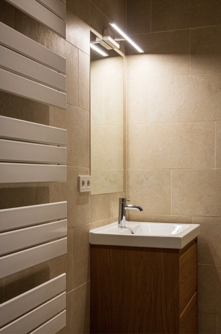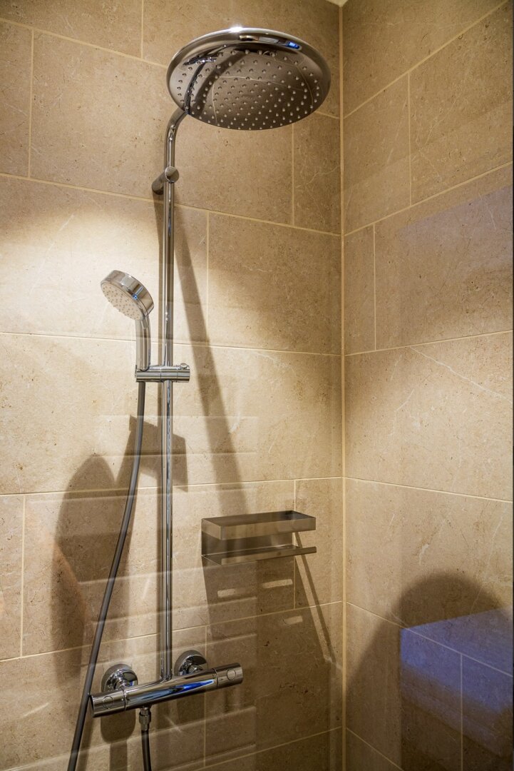 *Basic bathroom amenities with rain shower, towel radiator, towels, shower mat, hair dryer