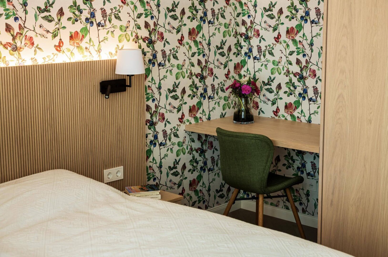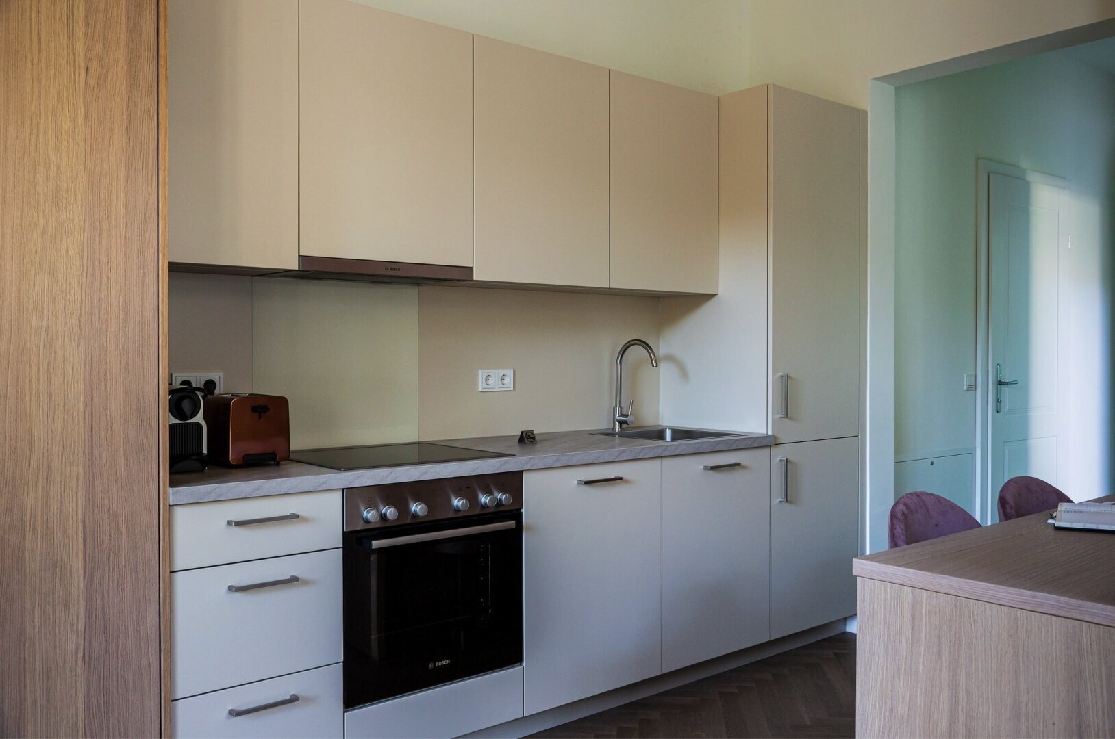 Welcome to the place… where the Viennese summer retreat was once invented and where tradition meets modernity today. Spacious living, a unique living experience, and maximum privacy—the 3-room-suite at the Winzer offers all this and more – renovated residential building directly opposite Pötzleinsdorf Palace Park. Located across the entire west wing, it comprises two separate bedrooms, three work areas, a large kitchen, and a separate bathroom and toilet. The ideal natural habitat for longer stays in a prime green location. And not least because of the majestic tower room – including a dining area, sofa lounge, and impressive garden view.