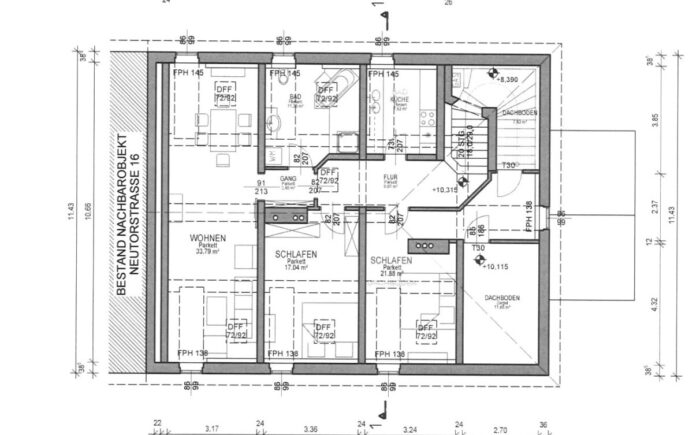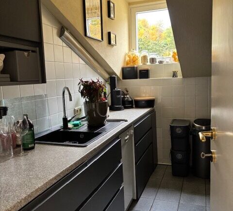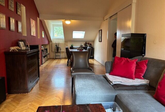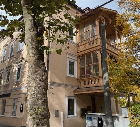 Sonnige und gemütliche 1991 ausgebaute Dachgeschoß-Altbauwohnung in bezaubernder Ceconi-Villa in unmittelbarer Nähe zum Neutor, zum Festspielhaus und zur Altstadt. Über das gepflegte Stiegenhaus erreicht man den Eingang der gemütlichen 3-Zimmer-Wohnung im 2.OG. Von hier geht es über eine eigene Innentreppe in den geräumigen Vorraum des Dachgeschoßes. Zur linken gelangt man in zwei Schlafzimmer und in die praktische Ankleide inkl. Abstellraum. Gleich gegenüber befinden sich das wunderschön ausgestattete neue Bad mit Regendusche und die moderne Küche mit allen Einbaugeräten. Am Ende des Vorraumes betritt man den großzügigen Wohnbereich, der nach Süden und Norden ausgerichtet ist. Hochwertige Parkettböden, schöne Türen und Fenster sowie die qualitätvolle Badezimmer-Ausstattung sorgen für eine äußerst angenehme Wohnatmosphäre trotz oder gerade wegen der Dachschräge. Der zur Wohnung gehörige Garten im Innenhof wird gleich zum Lieblingsplatzerl – hier lässt sich morgens mit Blick auf den Mönchsberg der Kaffee und abends ein Glas Wein herrlich genießen. Ein Parkplatz im Hof und ein Garagenplatz sorgen für entspanntes nach Hause kommen. 2012 erfolgte wegen des schwierigen Untergrundes eine sorgfältige gründungstechnische Sanierung der Ceconi-Villa. Vor 3 Jahren wurden alle Fenster der Dachgeschoßwohnung getauscht – in allen Räumen befinden sich schöne frisch abgeschliffene Fischgrät-Parkettböden.