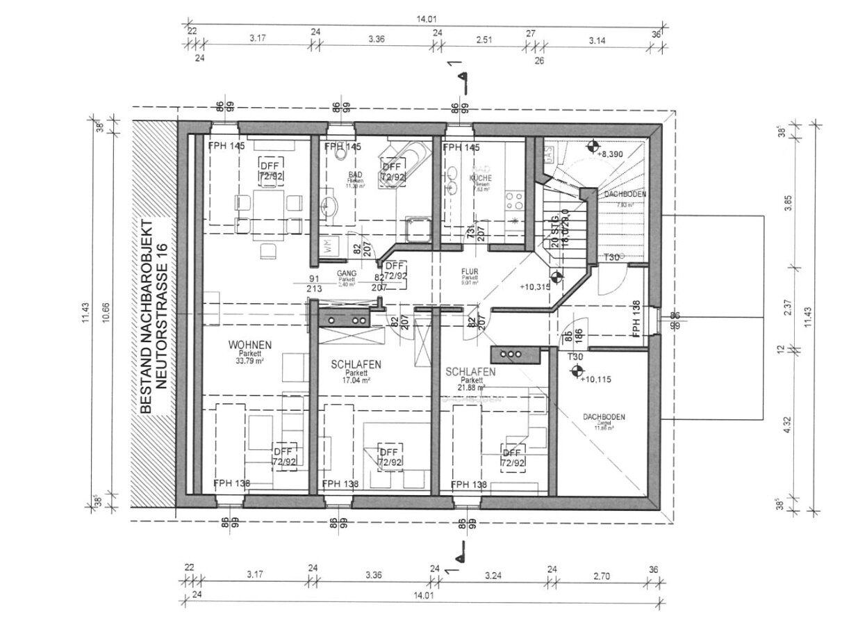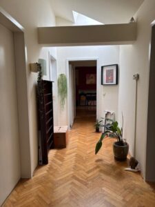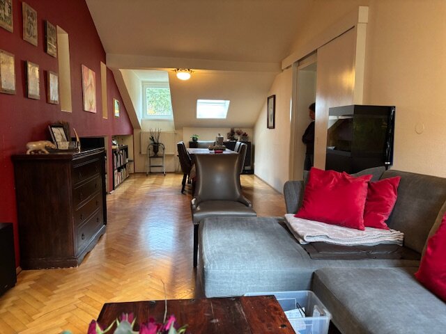 Sonnige und gemütliche 1991 ausgebaute Dachgeschoß-Altbauwohnung in bezaubernder Ceconi-Villa in unmittelbarer Nähe zum Neutor, zum Festspielhaus und zur Altstadt. Über das gepflegte Stiegenhaus erreicht man den Eingang der gemütlichen 3-Zimmer-Wohnung im 2.OG. Von hier geht es über eine eigene Innentreppe in den geräumigen Vorraum des Dachgeschoßes. Zur linken gelangt man in zwei Schlafzimmer und in die praktische Ankleide inkl. Abstellraum. Gleich gegenüber befinden sich das wunderschön ausgestattete neue Bad mit Regendusche und die moderne Küche mit allen Einbaugeräten. Am Ende des Vorraumes betritt man den großzügigen Wohnbereich, der nach Süden und Norden ausgerichtet ist. Hochwertige Parkettböden, schöne Türen und Fenster sowie die qualitätvolle Badezimmer-Ausstattung sorgen für eine äußerst angenehme Wohnatmosphäre trotz oder gerade wegen der Dachschräge. Der zur Wohnung gehörige Garten im Innenhof wird gleich zum Lieblingsplatzerl – hier lässt sich morgens mit Blick auf den Mönchsberg der Kaffee und abends ein Glas Wein herrlich genießen. Ein Parkplatz im Hof und ein Garagenplatz sorgen für entspanntes nach Hause kommen. 2012 erfolgte wegen des schwierigen Untergrundes eine sorgfältige gründungstechnische Sanierung der Ceconi-Villa. Vor 3 Jahren wurden alle Fenster der Dachgeschoßwohnung getauscht – in allen Räumen befinden sich schöne frisch abgeschliffene Fischgrät-Parkettböden.