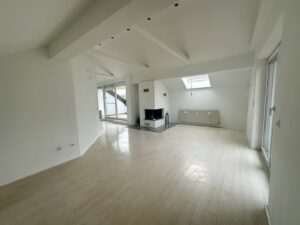 – Raumhöhe ca. 3,60 m mit charmanten Holzbalken in Weiß, weiß geölte Parkettböden, dimmbare Einbauspots