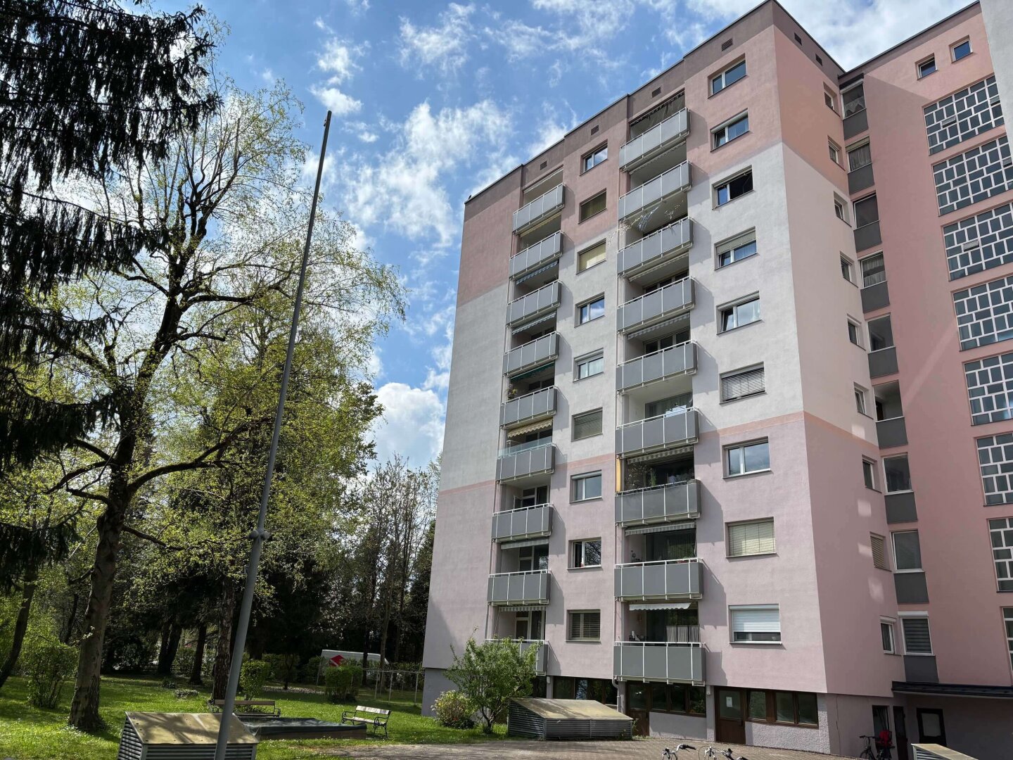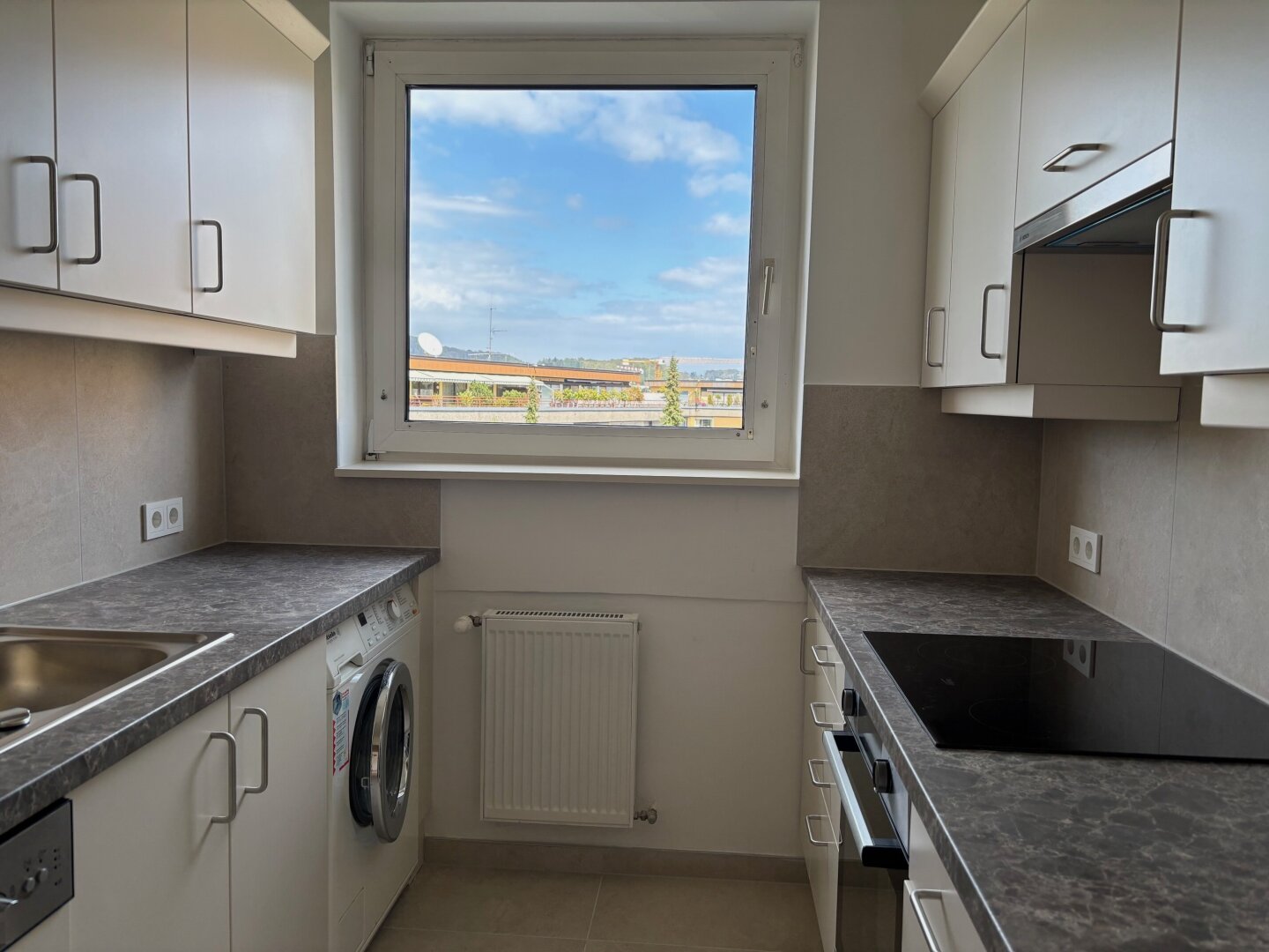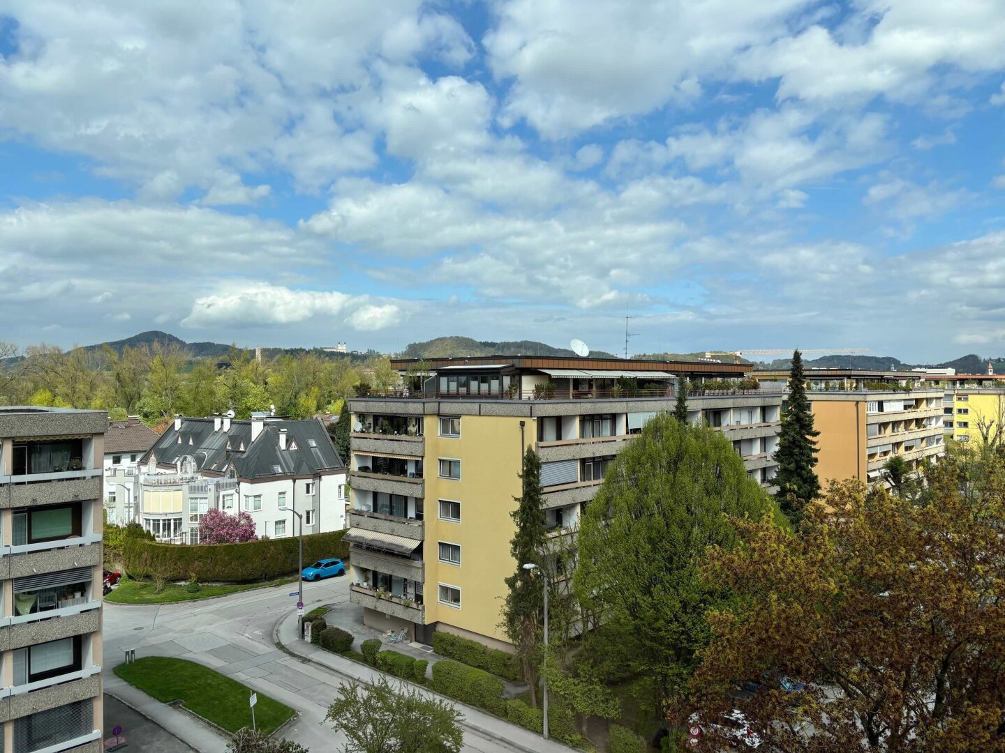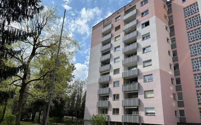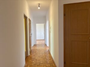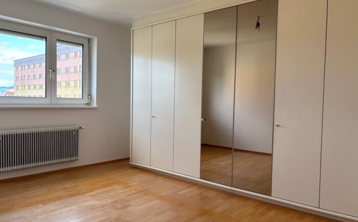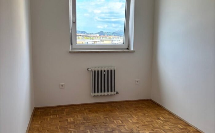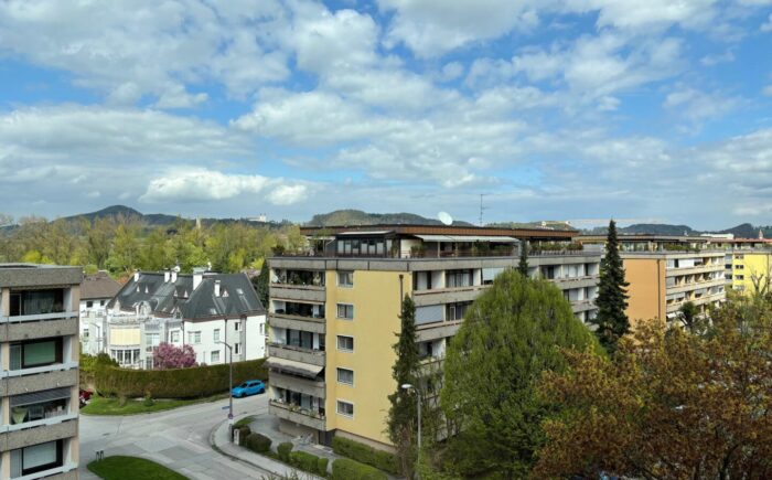 … und trotzdem in Ruhelage gleich ums Eck vom Lehener Park, befindet sich die neu renovierte 4-Zimmer-Wohnung mit Loggia und tollen Ausblicken (Maria Plain, Gaisberg, Kapuzinerberg, Festung, Untersberg) im 6. Stock eines gepflegten Wohnhauses aus den 70er-Jahren. Über den Lift oder das Stiegenhaus erreicht man barrierefrei den Wohnungseingang mit Sicherheitstüre. Hier betritt man das Vorzimmer mit praktischem Garderoben-Einbauschrank, Abstellraum, Duschbad und Toilette. Zur linken geht es in zwei in Richtung Osten (Maria Plain und Gaisberg) ausgerichtete Zimmer (Home-Office/Gästezimmer) sowie in die moderne Küche mit zum Großteil neuen Geräten (Herd, Dunstabzug, Geschirrspüler) und wunderschönem Fernblick – hier lässt es sich ganz wunderbar kochen. Gleich gegenüber der Küche befindet sich der Licht durchflutete Wohnraum mit vorgelagerter Loggia, die wiederum einzigartige Ausblicke bietet – Festung und Untersberg quasi zum Angreifen nah. Hier lassen sich schöne Stunden verbringen. Im Wohnraum finden Esstisch und Sofa Ihren Platz. Gleich im Anschluss an die Küche befindet sich das mit einem praktischen Einbauschrank ausgestattete geräumige Schlafzimmer.