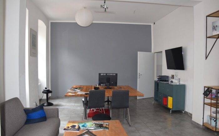 … und nahe der Thaliastraße befinden sich am Eck eines gepflegten, sympathischen Zinshauses in der Begegnungszone Hasnerstraße Räumlichkeiten im Erdgeschoß, die sich perfekt für ein viele Zwecke eignen: Büro, Werkstatt, Geschäftslokal uvm. Über das gut einsichtige Portal erreicht man einen großen Raum mit ca. 46,58qm, an den direkt eine Teeküche anschließt. Ein kleiner Abstellraum, zwei Toiletten und ein Keller ergänzen das Raumangebot. Die Räume sind mit Laminat-Böden ausgestattet – mit einem kleinen Face-Lifting (nach Absprache mit der Eigentümerin bezüglich finanzieller Beteiligung) entsteht hier eine kleine, feine, praktisch und ruhig gelegene working-base für viele neue Ideen.