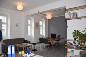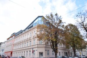 … und nahe der Thaliastraße befinden sich am Eck eines gepflegten, sympathischen Zinshauses in der Begegnungszone Hasnerstraße Räumlichkeiten im Erdgeschoß, die sich perfekt für ein viele Zwecke eignen: Büro, Werkstatt, Geschäftslokal uvm. Über das gut einsichtige Portal erreicht man einen großen Raum mit ca. 46,58qm, an den direkt eine Teeküche anschließt. Ein kleiner Abstellraum, zwei Toiletten und ein Keller ergänzen das Raumangebot. Die Räume sind mit Laminat-Böden ausgestattet – mit einem kleinen Face-Lifting (nach Absprache mit der Eigentümerin bezüglich finanzieller Beteiligung) entsteht hier eine kleine, feine, praktisch und ruhig gelegene working-base für viele neue Ideen.