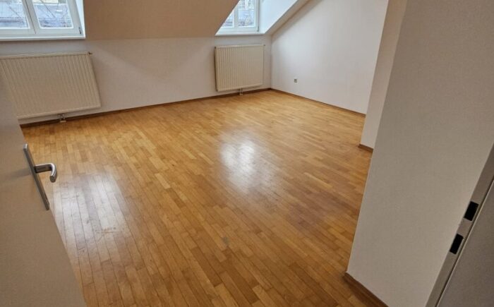 Dieses besonders helle und gepflegte, barrierefreie 2-Zimmer-Wohnung mit ca. 78qm befindet sich im 3. OG des ausgebauten Dachgeschosses eines Gründerzeit-Zinshauses mit insgesamt 12 Wohnungen in ruhiger Lage zwischen Allianz-Stadion und Baumgartner Höhe. Die Wohnung besteht aus dem zentralen Vorraum von dem man zur linken sowohl das Schlafzimmer als auch das Wohnzimmer mit Blick auf die goldene Kuppel von Steinhof erreicht. Gleich gegenüber geht es in die Küche mit herrlichem Ausblick ins Grüne. Das Wohnungsangebot wird ergänzt von einem großen Badezimmer mit Wanne, dem WC, und einem Abstellraum. Im Hinterhof befindet sich ein schöner Allgemein-Garten. Im Kellerabteil findet man Platz für vieles.
