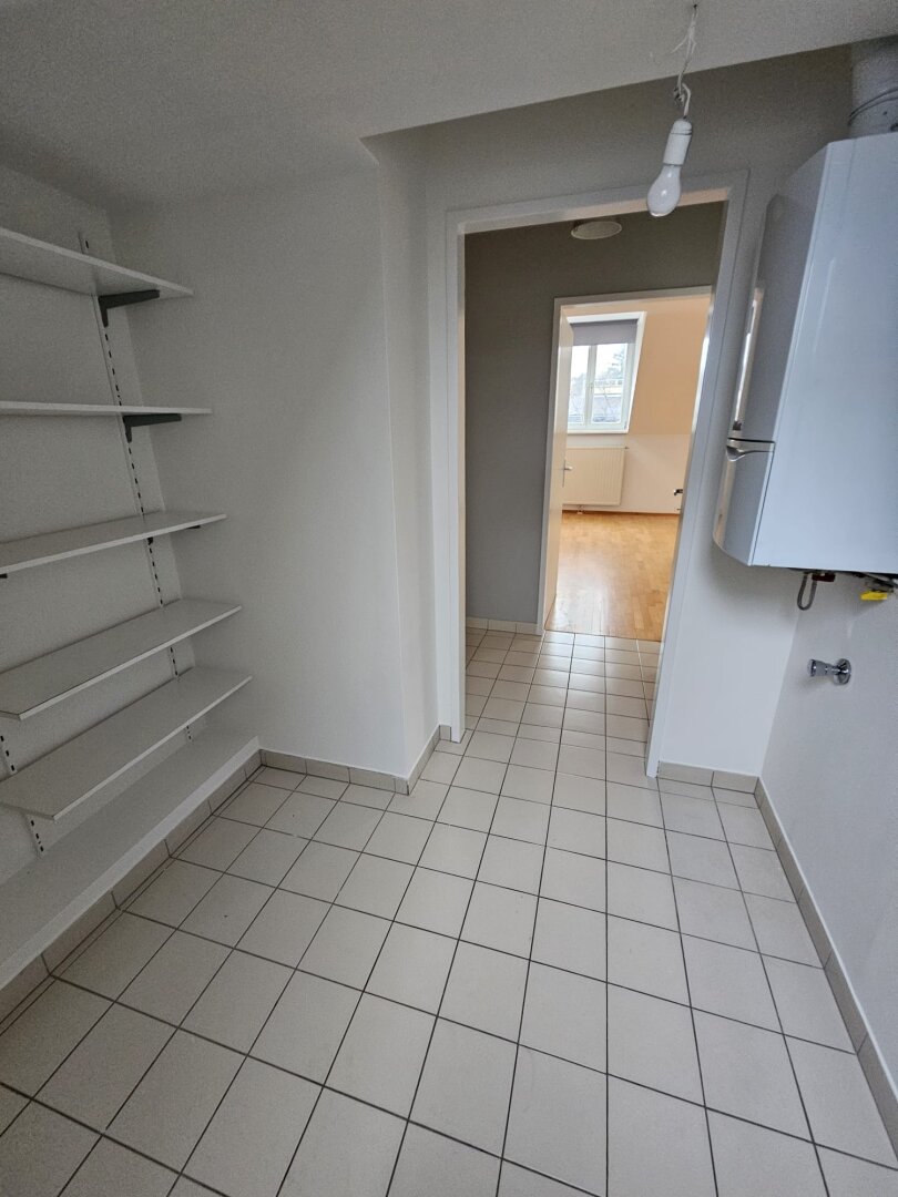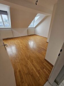 Dieses besonders helle und gepflegte, barrierefreie 2-Zimmer-Wohnung mit ca. 78qm befindet sich im 3. OG des ausgebauten Dachgeschosses eines Gründerzeit-Zinshauses mit insgesamt 12 Wohnungen in ruhiger Lage zwischen Allianz-Stadion und Baumgartner Höhe. Die Wohnung besteht aus dem zentralen Vorraum von dem man zur linken sowohl das Schlafzimmer als auch das Wohnzimmer mit Blick auf die goldene Kuppel von Steinhof erreicht. Gleich gegenüber geht es in die Küche mit herrlichem Ausblick ins Grüne. Das Wohnungsangebot wird ergänzt von einem großen Badezimmer mit Wanne, dem WC, und einem Abstellraum. Im Hinterhof befindet sich ein schöner Allgemein-Garten. Im Kellerabteil findet man Platz für vieles.