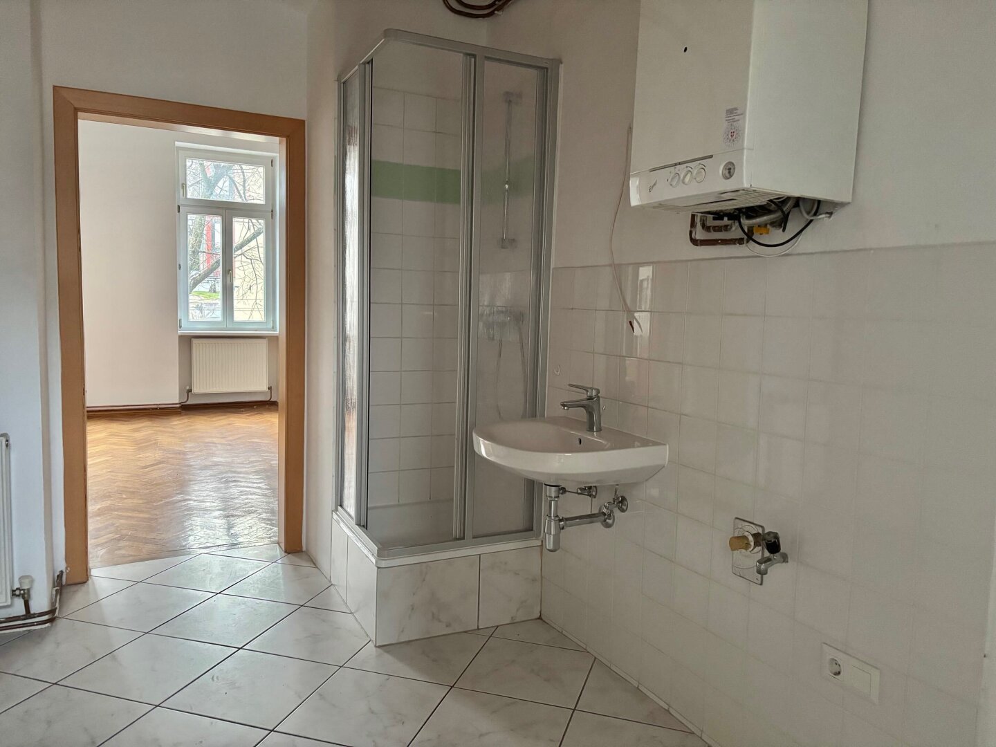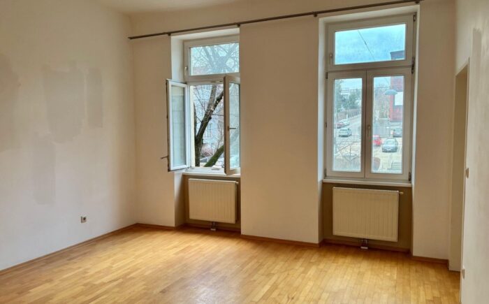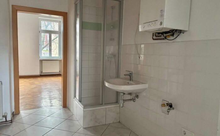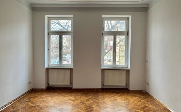 Diese besonders helle und gepflegte, barrierefreie Altbauwohnung mit ca. 84qm befindet sich im 1. OG eines Gründerzeit-Zinshauses mit insgesamt 12 Wohnungen in ruhiger Lage zwischen Allianz-Stadion, Baumgartner Höhe und Steinhof. Die Wohnung besteht aus dem zentralen Vorraum mit praktischem Einbauschrank, aus der Küche, zwei Badezimmern mit Wanne/Dusche und Waschmaschinenanschluss, einem WC, sowie zwei ca. gleich großen Räumen – Wohnzimmer, Schlafzimmer – und aus dem Kabinett, welche alle straßenseitig ausgerichtet sind. Zur Wohnung gehört auch ein Kellerabteil, im Hinterhof befindet sich ein schöner Garten zur allgemeinen Benützung.