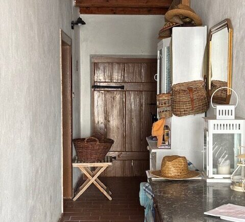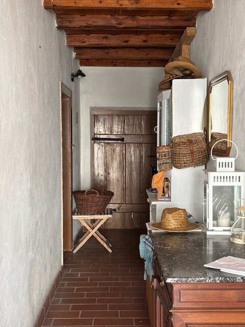 Direkt neben dem Haus befindet sich das große Einfahrtstor – hier gelangt man in den romantischen Garten mit verzaubertem Pool, einem gemauerten Weinkeller und dem Geräteschuppen.