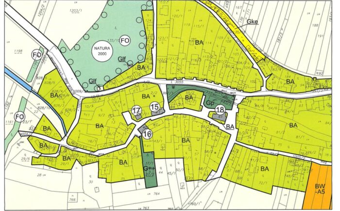 Anstelle des alten Hauses kann auf der Fläche Bauland-Agrar (ca. 572qm) nach den Richtlinien der NÖ. Bauordnung ein größeres Wohnhaus gebaut werden – Tierhaltung ist hier ebenso möglich. Das restliche Grundstück mit einer Fläche von 2.721qm befindet sich im Naturschutzgebiet NATURA 2000.