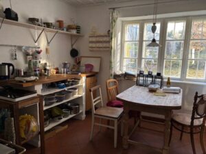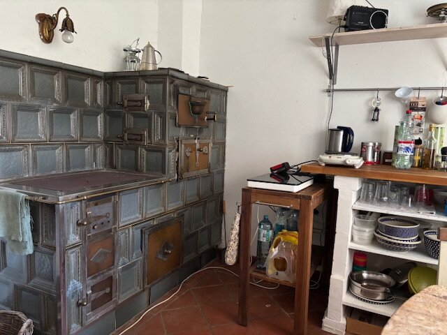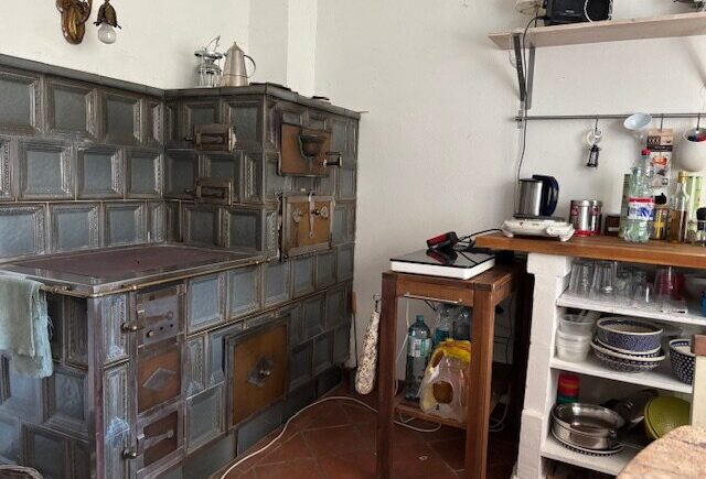 Über die einladende Eingangstüre betritt man einen längeren Gang mit schöner Holztramdecke, von welchem sich zur linken und zur rechten die Wohnräume erschließen. Zur linken geht es in das Wohnzimmer und gleich nebenan in die gemütliche Wohnküche, die mit einem wunderbaren Blick in den Garten verzaubert. Ein originaler Kachelofen dient zum Kochen / Backen und Heizen. Am Ende des Ganges führt eine Türe in den romantischen Garten. Zur rechten betritt man das Bad mit Dusche, das WC und das Schlafzimmer. Alle Räume werden mit Kachel-/Holzöfen beheizt – das Bad mit einer Elektroheizung. Über den Wohnräumen befindet sich ein Dachboden, der über eine Treppe von außen erschlossen ist. Dieser wartet auf den Ausbau – hier können weitere Zimmer oder ein Studio eingerichtet werden.