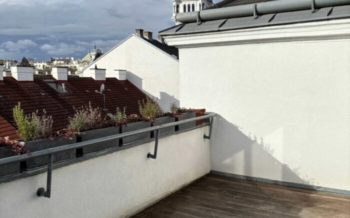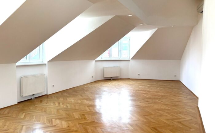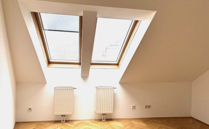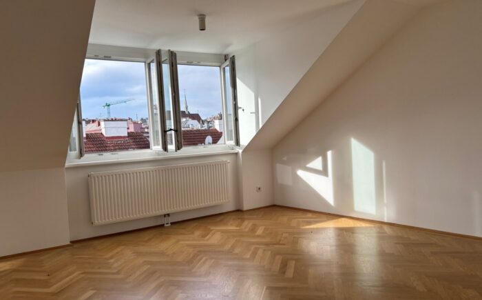 … in einem 2006 ausgebauten Dachboden eines schönen Zinshauses nahe des Kutschkermarktes befindet sich die großzügige, moderne Dachgeschoßwohnung mit Terrasse und Blick über Währing.
