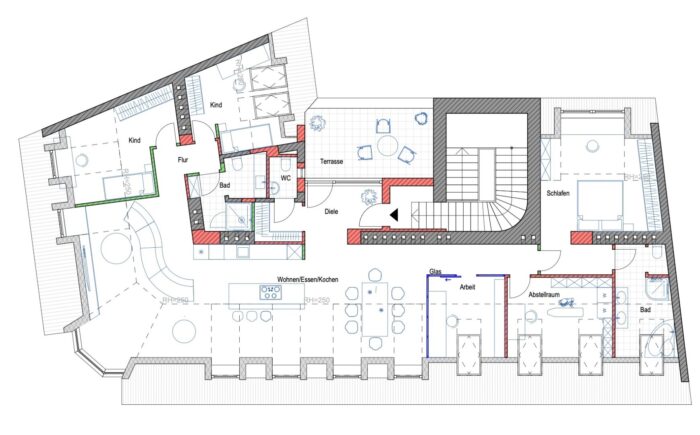 Achtung: Der Original-Plan hat einige Abweichungen zum Ist-Zustand. Des weiteren haben wir 2 schöne Planvarianten entwickelt – entweder für eine Familie mit Kindern oder für ein Paar, welches großzügig wohnen möchte.