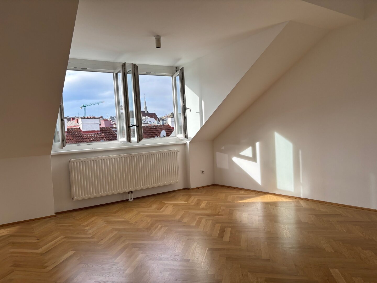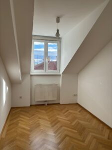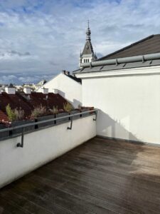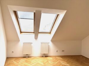 … in einem 2006 ausgebauten Dachboden eines schönen Zinshauses nahe des Kutschkermarktes befindet sich die großzügige, moderne Dachgeschoßwohnung mit Terrasse und Blick über Währing.