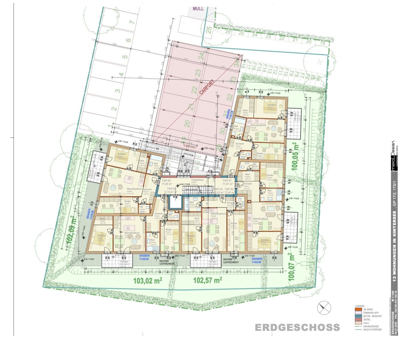 Erdgeschoss: Fünf 3-Zimmer-Wohnungen mit Garten (Wohnfläche ca. 72,50m²) + (Gartenfläche ca. 100m²) – jeweils € 314.000,00