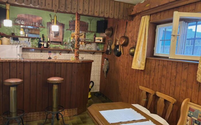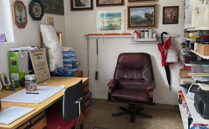 Das 1963 errichtete und regelmäßig gepflegte Einfamilienhaus mit Wohnbereich im Obergeschoß und Arbeitsbereich im Untergeschoß erfüllt diese Träume seit Jahren. Im Erdgeschoß befindet sich eine große Werkstatt, ein Büro, weitere Nebenräume sowie zwei Garagen. Vor dem Haus ist Platz für mehrere PKW`s. Vom Hauseingang betritt man den Vorraum mit praktischem Abstellraum und einem Kellerstüberl im Original Vintage-Stil – ein Highlight des Hauses. Über die Platz sparende Treppe geht es in den Wohnbereich. Hier genießt man vom Esszimmer mit angeschlossener Küche einen wunderbaren Gaisbergblick. Beim Frühstück in der Morgensonne sammelt man Energie für einen anstrengenden Tag. Gegenüber befindet sich das gemütliche Wohnzimmer mit vorgelagerter, traumhafter Sonnenterrasse mit wunderbarem Untersbergblick und Sonne von mittags bis abends. Drei weitere Zimmer, ein Vorraum, ein Duschbad und ein WC ergänzen das Raumangebot dieser Etage.