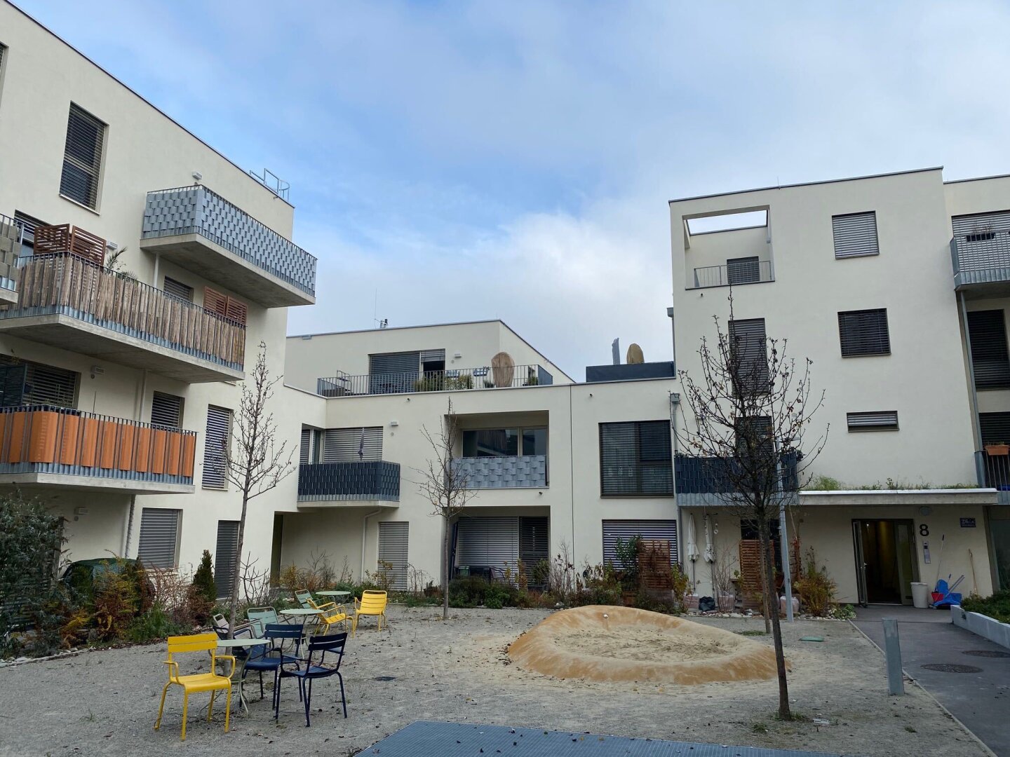 In den Innenhöfen befinden sich Grünflächen und Spielplätze. Zur Wohnung kann ein TG-PLatz dazu gemietet werden.