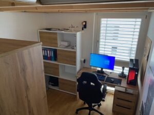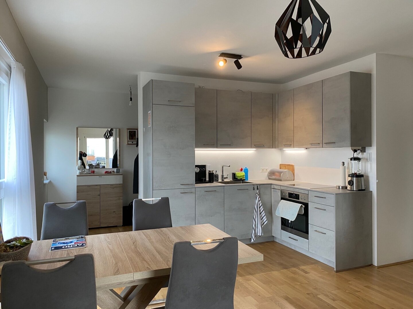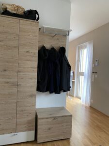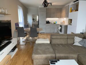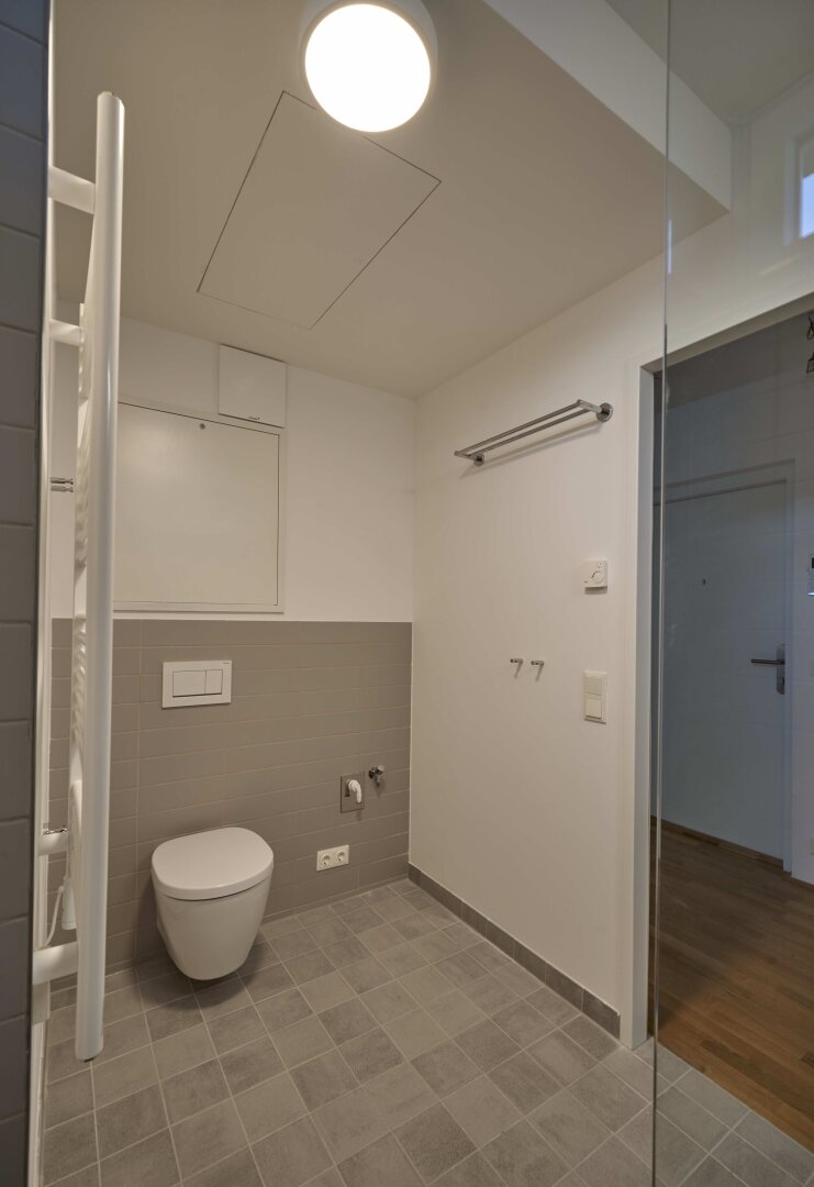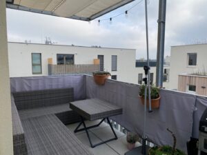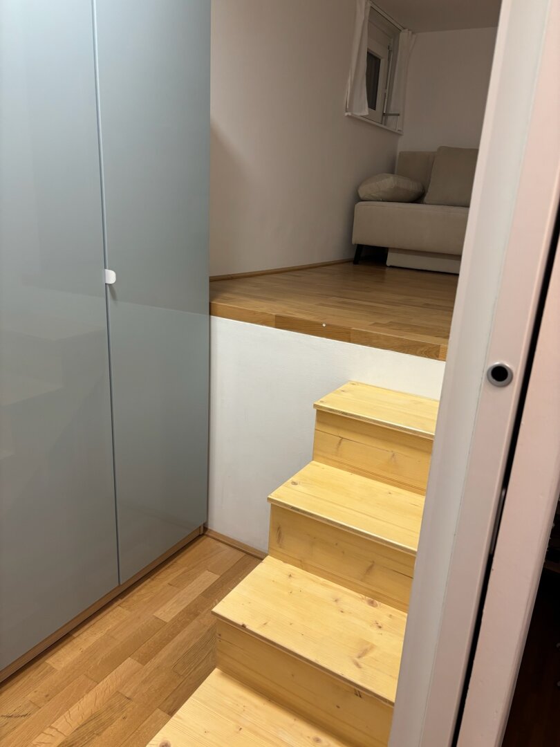 Die wunderbar helle, gemütliche Wohnung und die perfekte Nahversorgung in der Umgebung sind Pluspunkte, die herrliche Lebens- und Wohnqualität garantieren. Über das Stiegenhaus oder über den Lift erreicht man die mit 2 Eingängen ausgestattete Wohnung – diese erlauben zB. Wohnen & Arbeiten. Der Haupteingang führt in das geräumige Vorzimmer, zur linken geht es in die perfekt ausgestattete große Wohnküche mit Ausgang auf die Sonnen-Terrasse, von welcher sich ein traumhafter Ausblick bietet. Neben dem Wohnraum befindet sich das schöne Bad mit großer Dusche und Waschmaschinen-Anschluss und das gemütliche Schlafzimmer – ebenso mit Ausgang auf die Terrasse. Über einen 2. Wohnungseingang im unteren Geschoß erreicht man einen kleinen Raum (ca. 6qm) mit einer kleinen Platform (ca. 3qm), die sich als Büro/Gästezimmer eignet und über eine kleine Treppe verbunden ist. Ein weiterer wichtiger Pluspunkt ist das Thema Heizen und Kühlen im Wohnquartier: Ökologisches und kostengünstiges Heizen ohne Heizkörper, zugleich kühlendes Temperieren im Sommer ohne stromfressende Klimaanlage.
